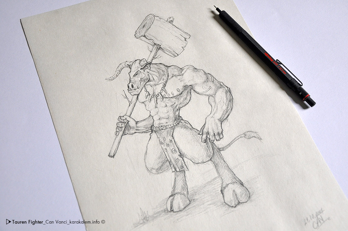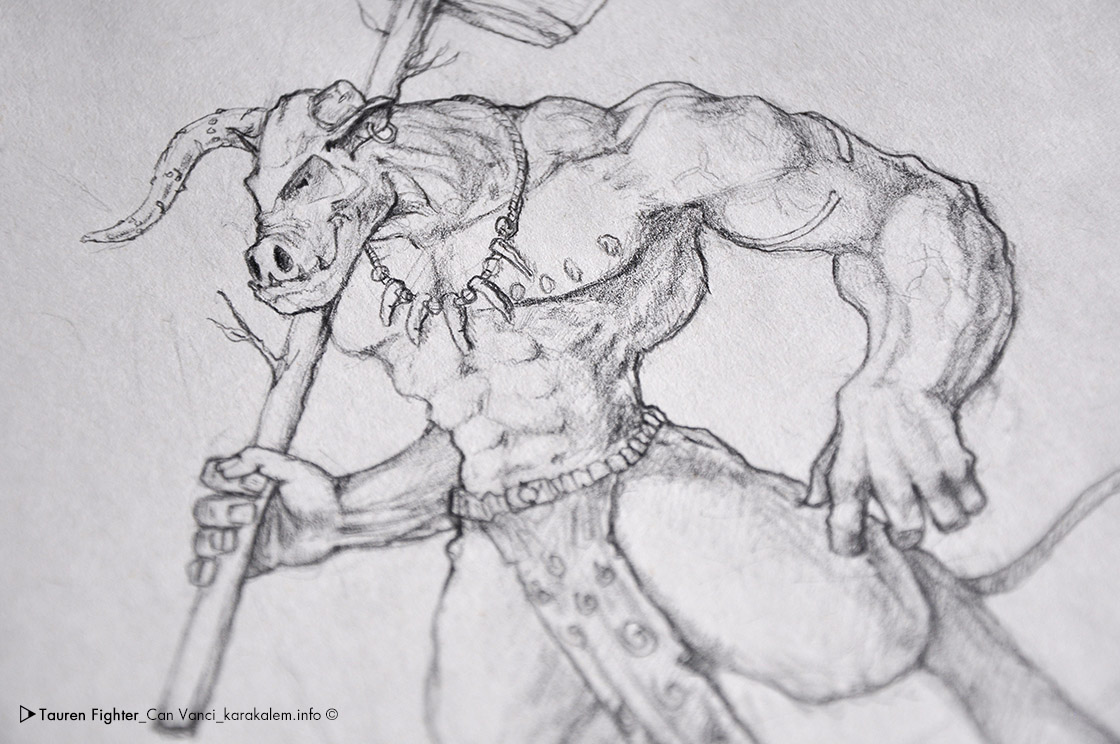 Tr/EngWorld of WarCraft oyunundaki Tauren karakterlerinden esinlenerek çizdiğim karakalem çalışmasını görmekteyiz.The character design of mine inspired from World of WarCraft game, Tauren.Project DetailsDate: 29.10.2007Details: A4 Size, 0.5B Mechanical PencilWebsite: www.karakalem.infoShare: